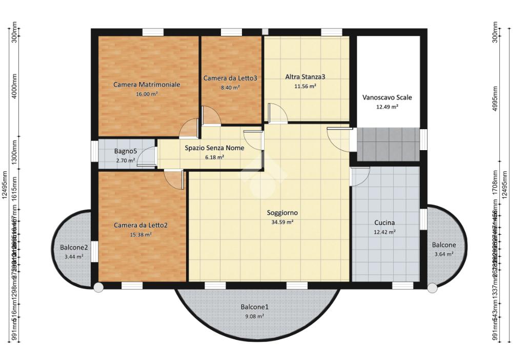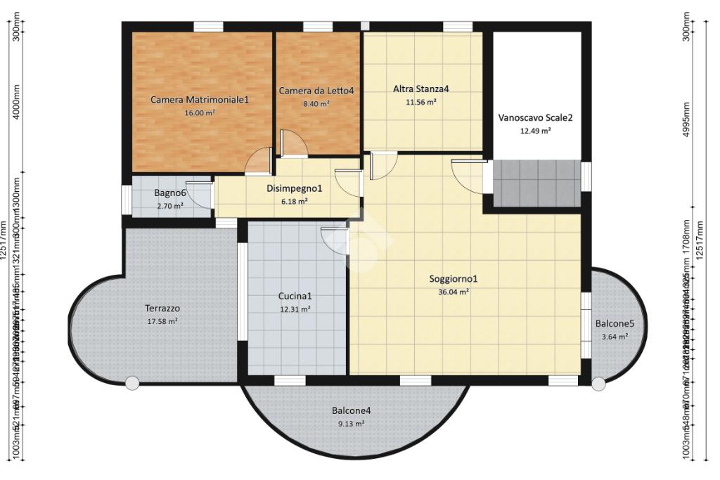 Tramite scala coperta, si accede ai piani superiori attualmete completamete spogli. Facilmente divisibili, vi possono essere realizzati o appartamenti con 3 camere o due appartamenti bilocali.