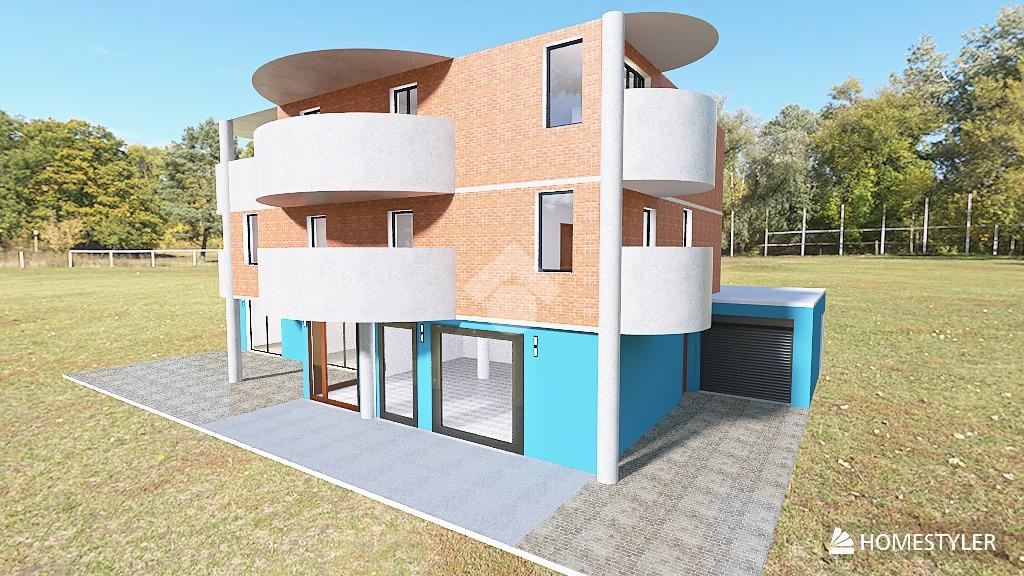 Al piano terra, prenderebbe posto un negozio con una ampia vetrata, il tutto facilmente convertibile in eventuali garage.