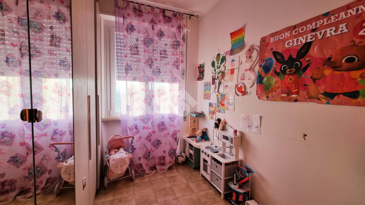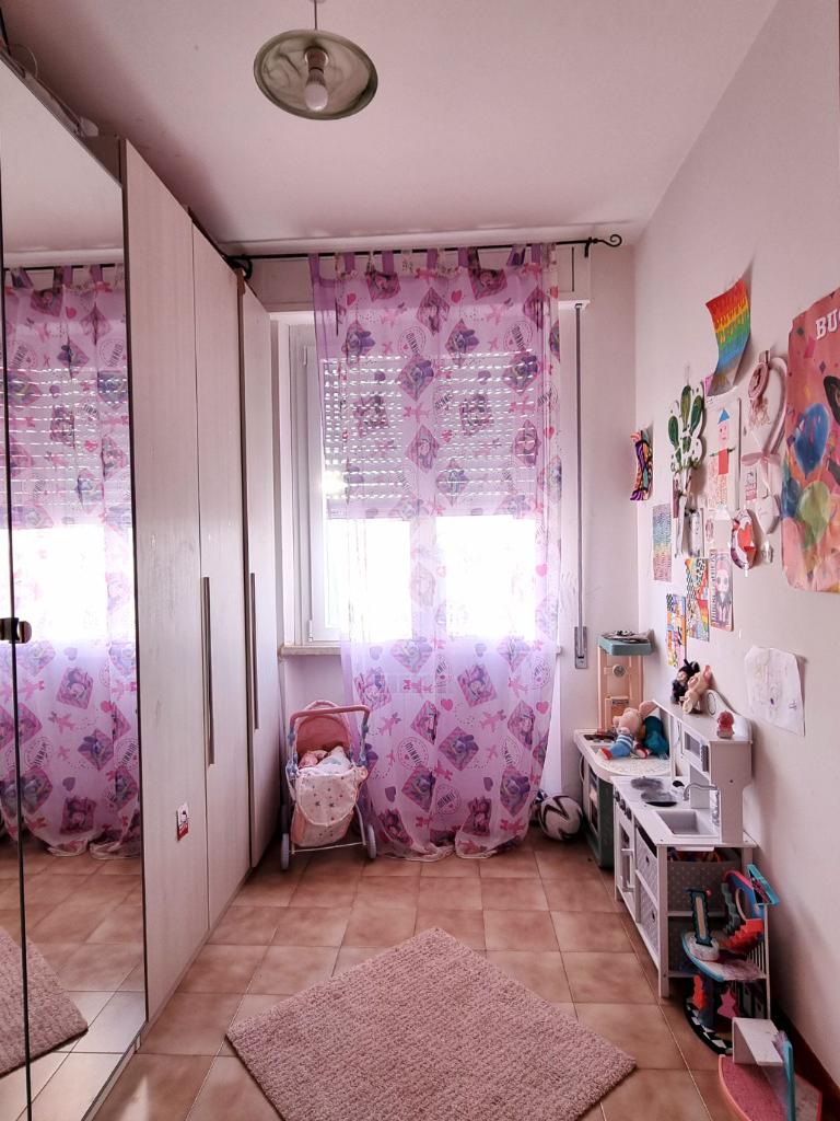 L'immobile, è composto da: ingresso, cucina abitabile, un ampio soggiorno, una camera matrimoniale, una camera doppia, una cameretta e due bagni finestrati