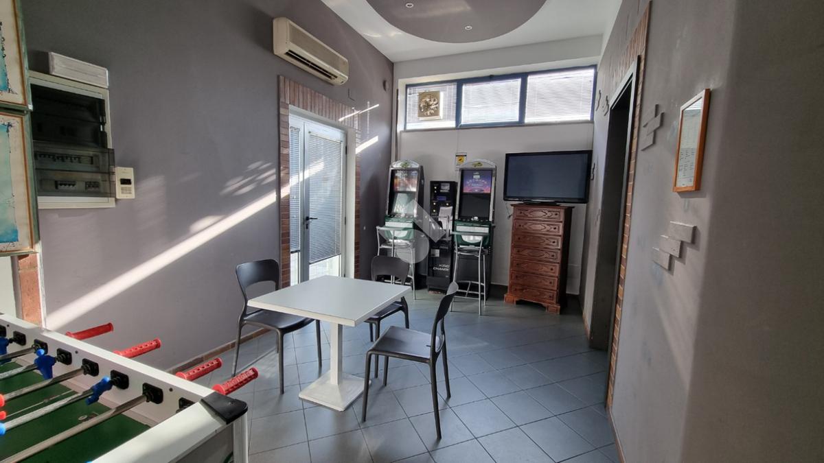 L'immobile ospita un bar ed è diviso in due ambienti principali. Dal lato della strada il bancone con l'accesso al pubblico. Nella parte retrostanteuna stanza slot ed il bagno.