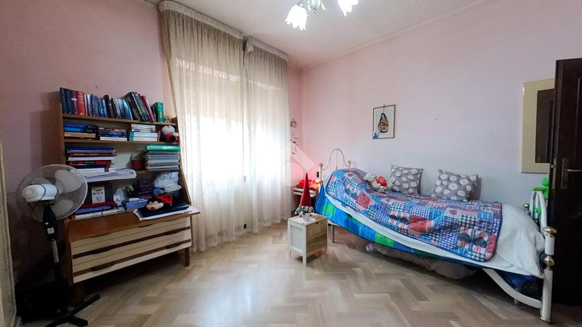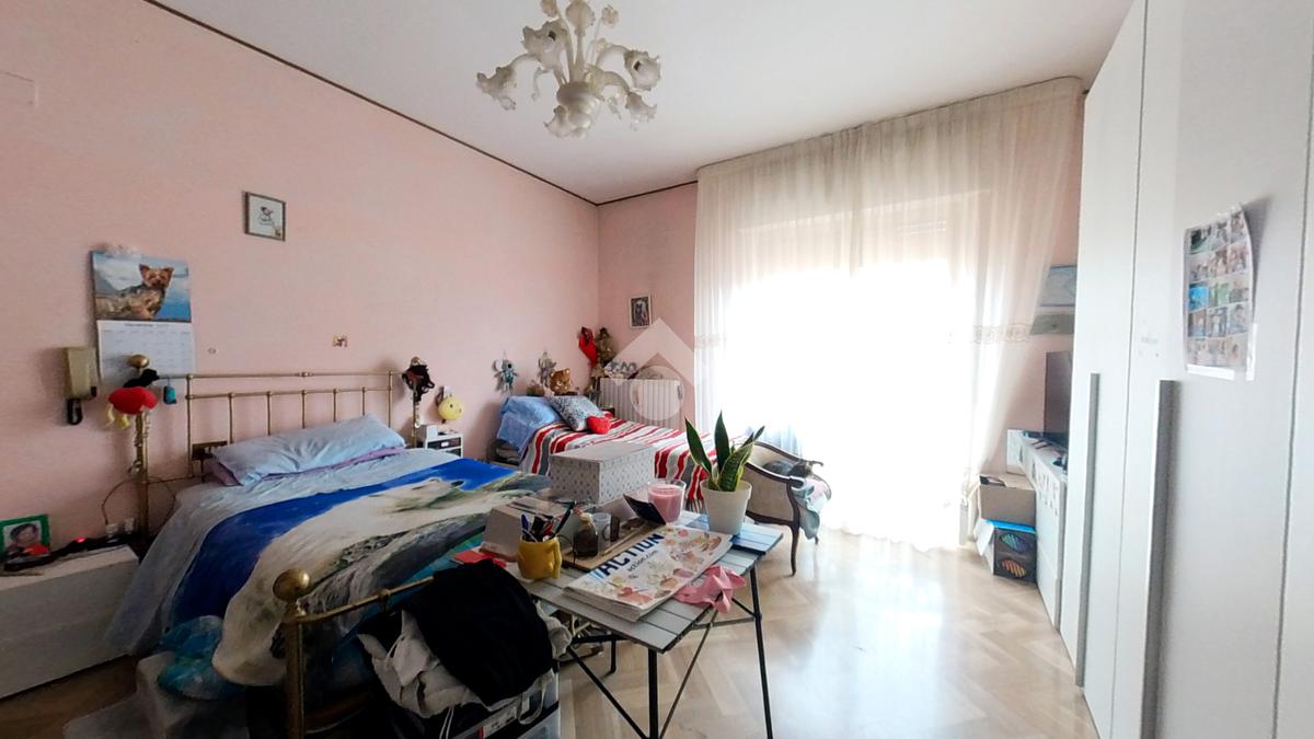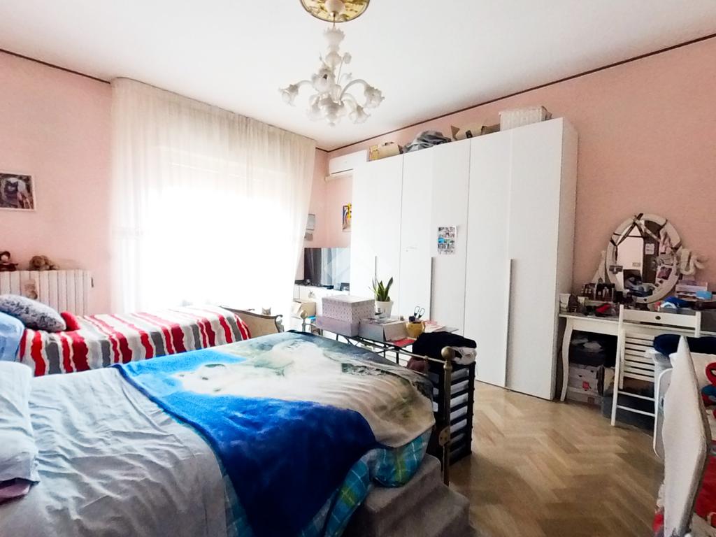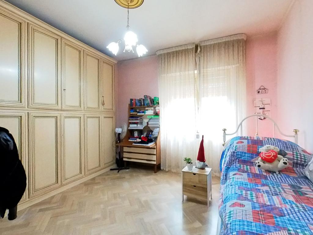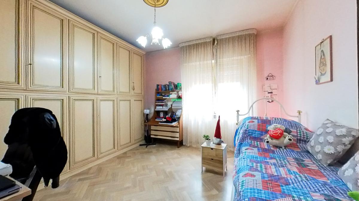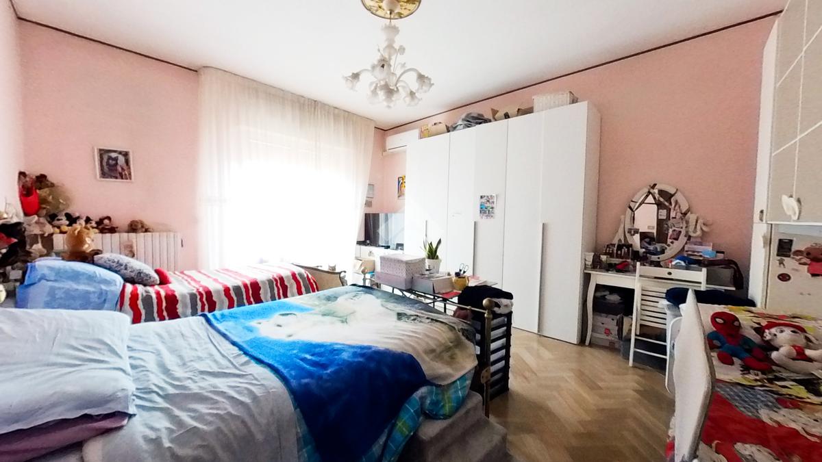L'immobile, che prende posto sull'interezza del piano, è strutturato in un lungo disimpegno, una sala da pranzo con retrocucina, un soggiorno ampio, tre camere da letto doppie ed una cameretta, due bagni finestrati.