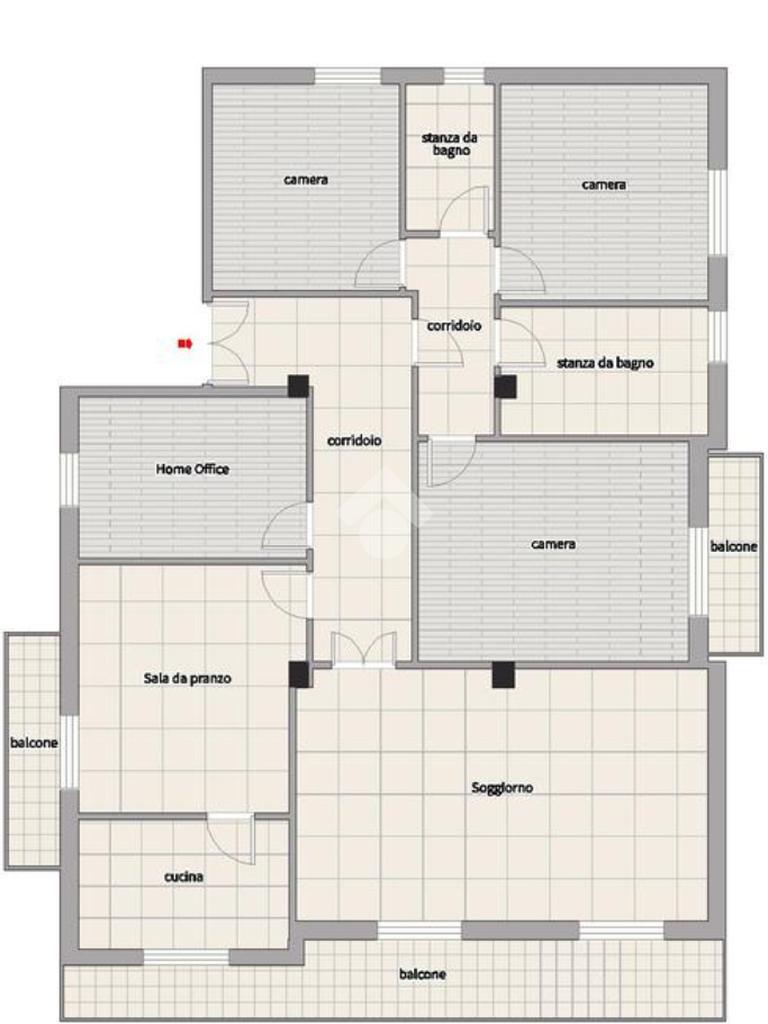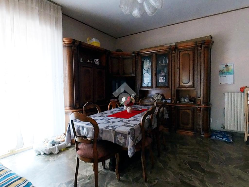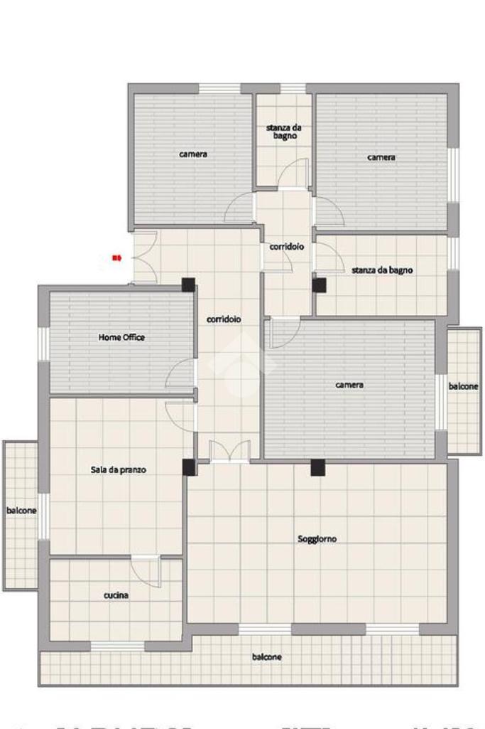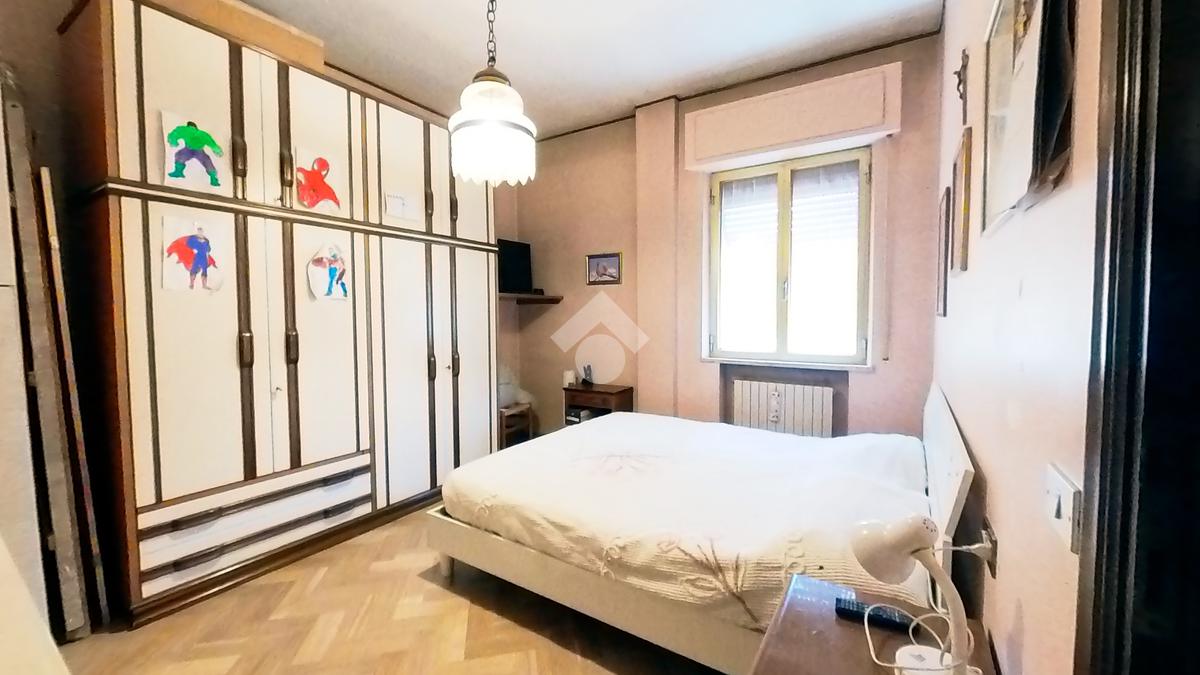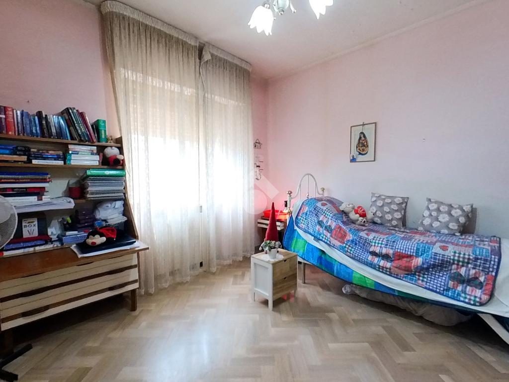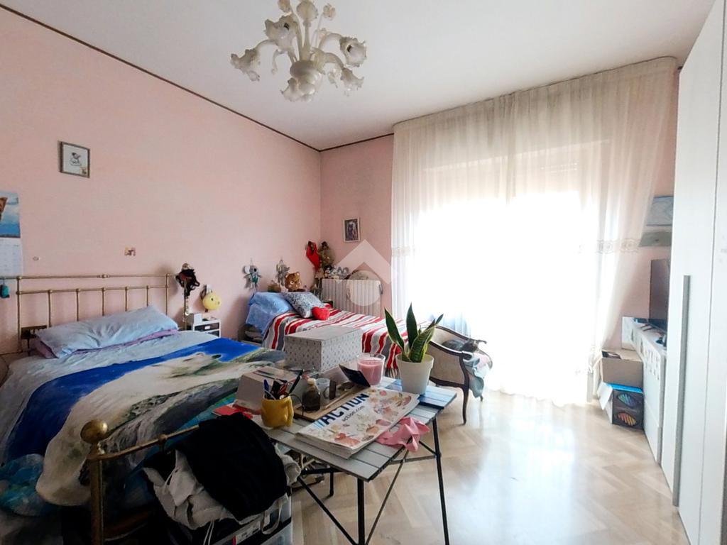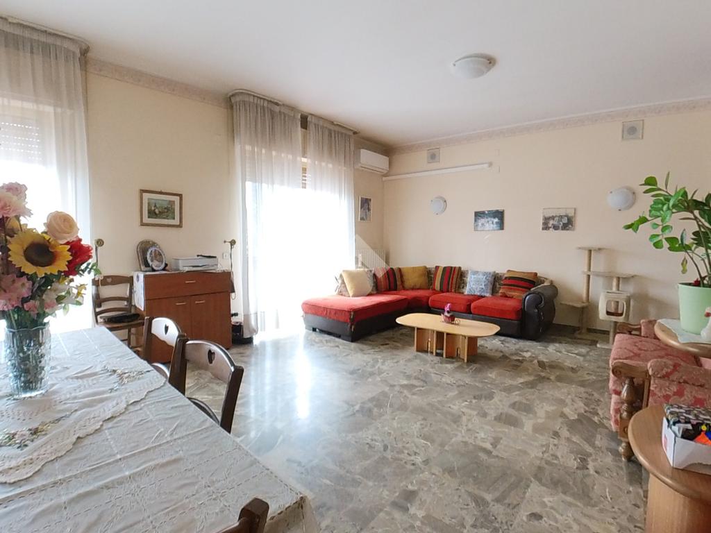 L'immobile, che prende posto sull'interezza del piano, è strutturato in un lungo disimpegno, una sala da pranzo con retrocucina, un soggiorno ampio, tre camere da letto doppie ed una cameretta, due bagni finestrati.
