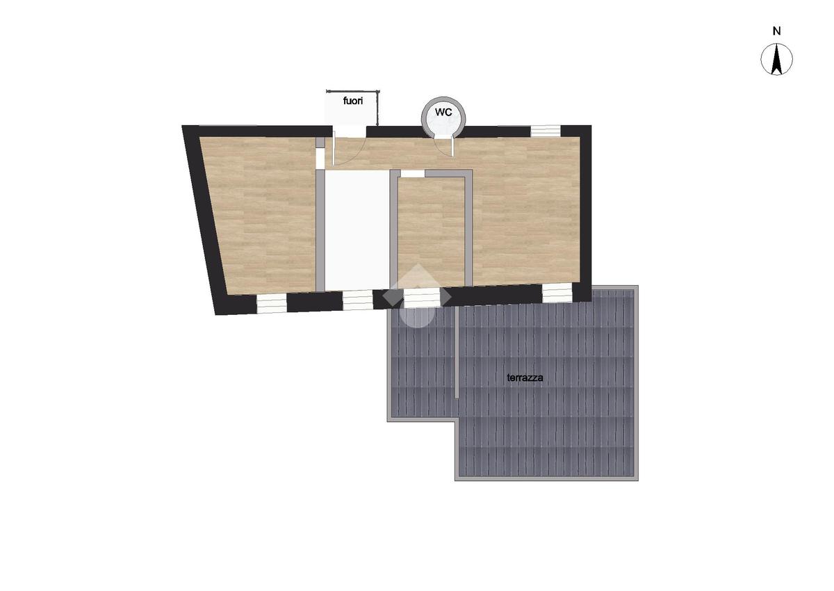 L'immobile è composto di un corpo principale su più livelli con un terrazzo lato sud, il piano terra è costituito di locali magazzino.